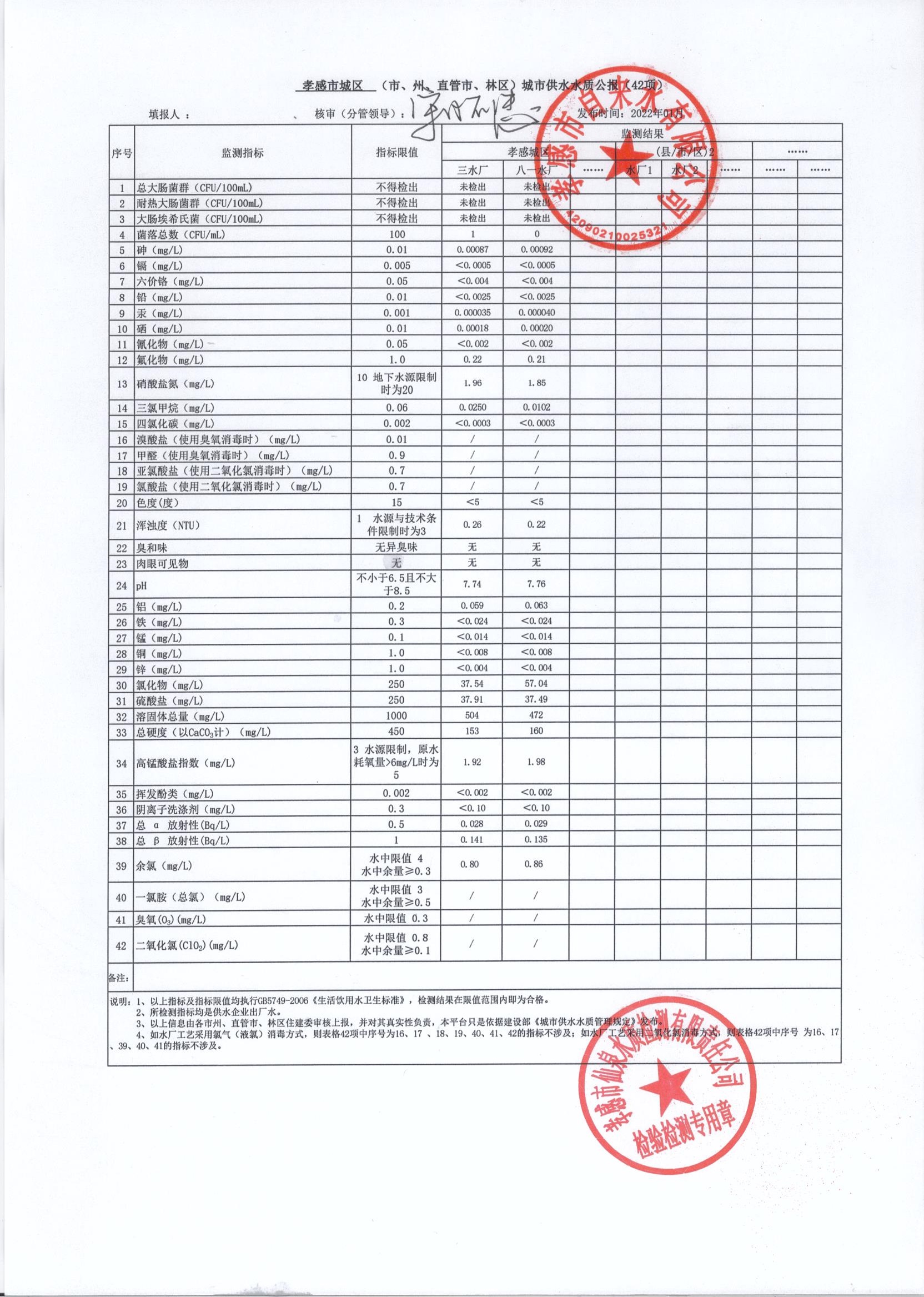2022年1月水質(zhì)報(bào)告