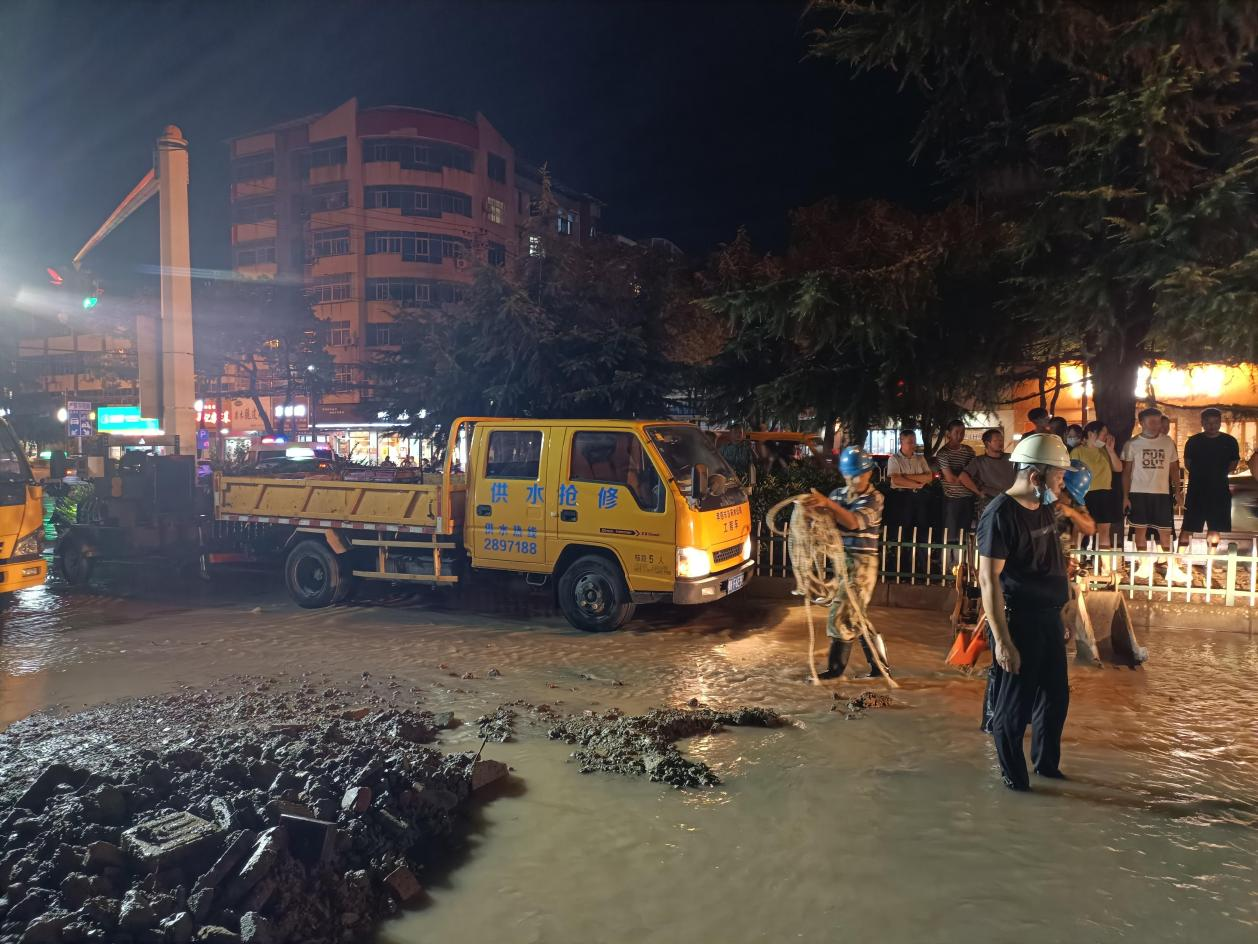 7月28日晚7時許,長征路與建設(shè)路交叉路口附近的一條直徑600毫米的供水主管道突發(fā)爆管,造成周邊居民用水受到嚴(yán)重影響。接到市民反映后,公司立即組織搶修人員第一時間趕赴現(xiàn)場。搶修人員在勘察現(xiàn)場確定漏點(diǎn)的同時,根據(jù)管徑大小和材質(zhì),制定了維修方案,并緊急聯(lián)系挖掘機(jī)、動力站進(jìn)行增援。