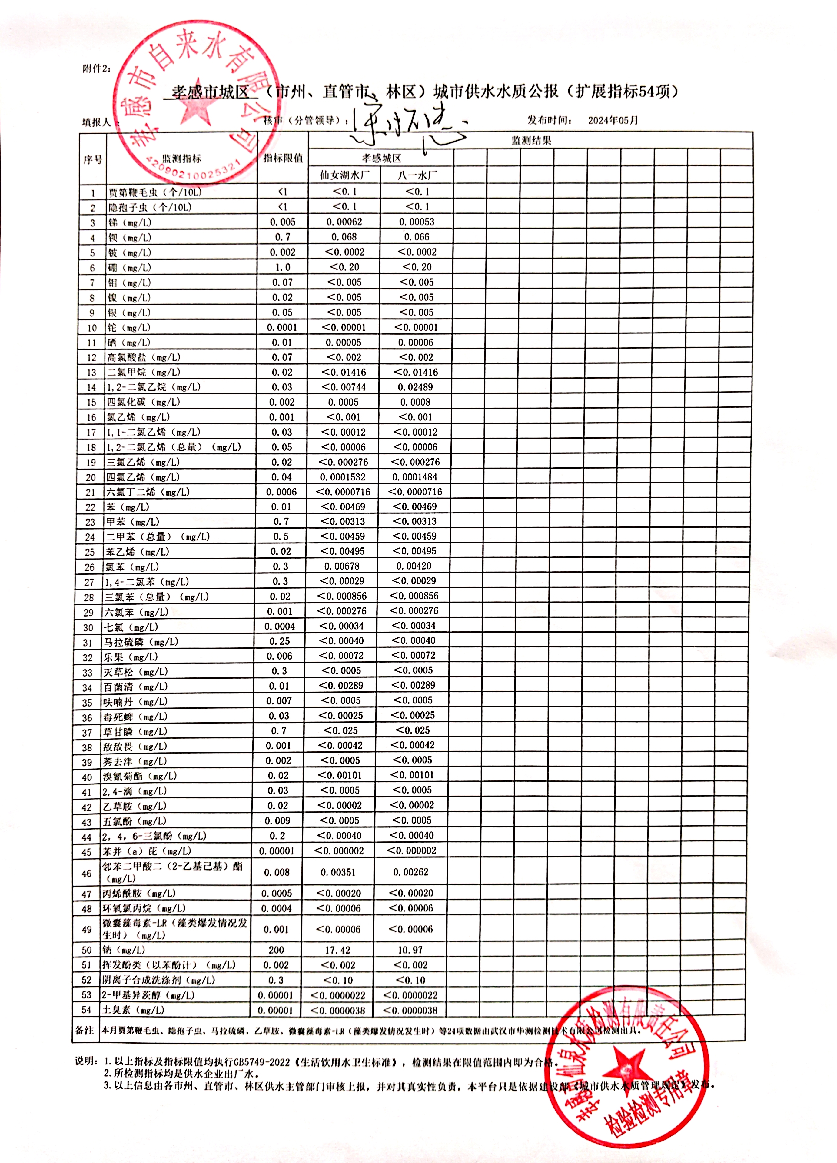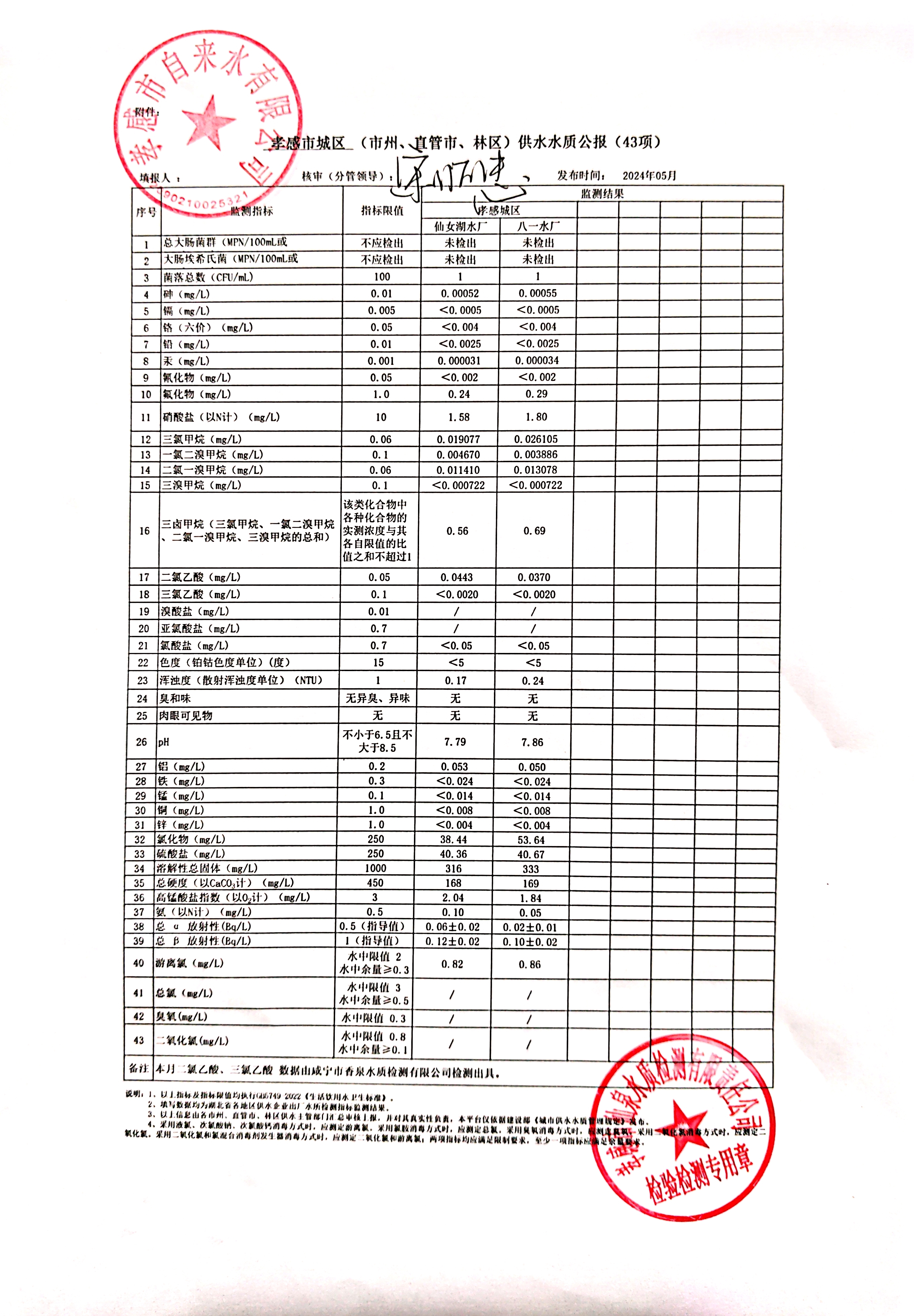 2024年5月水質(zhì)報(bào)告