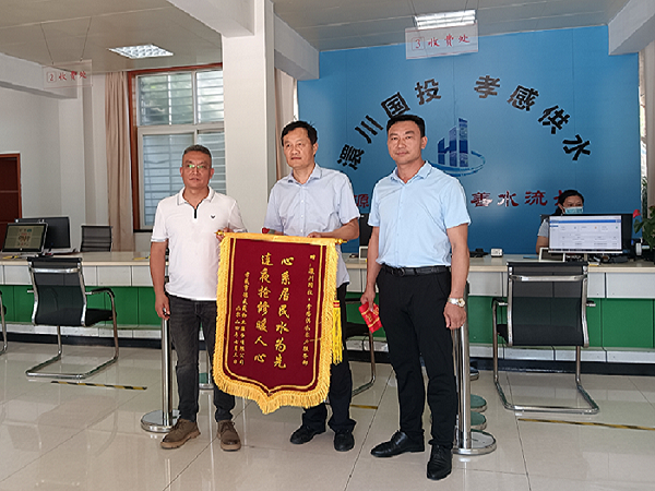 “非常感謝自來(lái)水公司,快速精準(zhǔn)地定位了漏點(diǎn),及時(shí)維修,保障了小區(qū)居民正常用水,幫我們解決了一個(gè)大難題!”7月5日上午,民邦熙公館小區(qū)物業(yè)工作人員將印有“心系居民水為先 連夜搶修暖人心”的錦旗送到了孝感市自來(lái)水有限公司,對(duì)我公司心系群眾、為民解憂,為用戶提供優(yōu)質(zhì)供水服務(wù)表示衷心感謝。