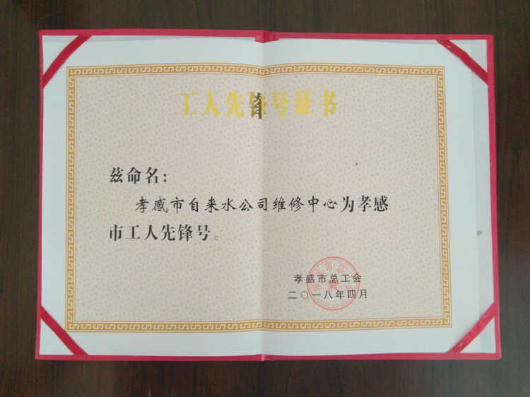 市自來(lái)水公司維修中心喜獲“孝感市工人先鋒號(hào)”榮譽(yù)稱號(hào)