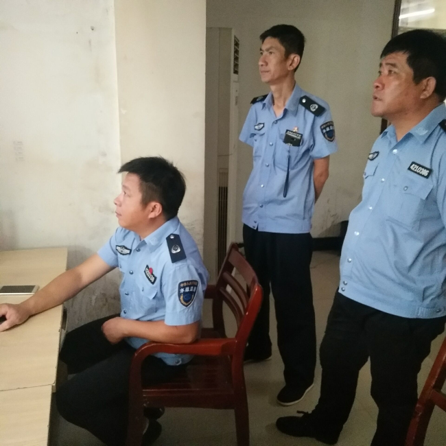 監(jiān)察大隊在取水泵站查看監(jiān)控視頻