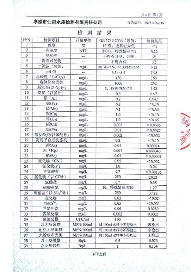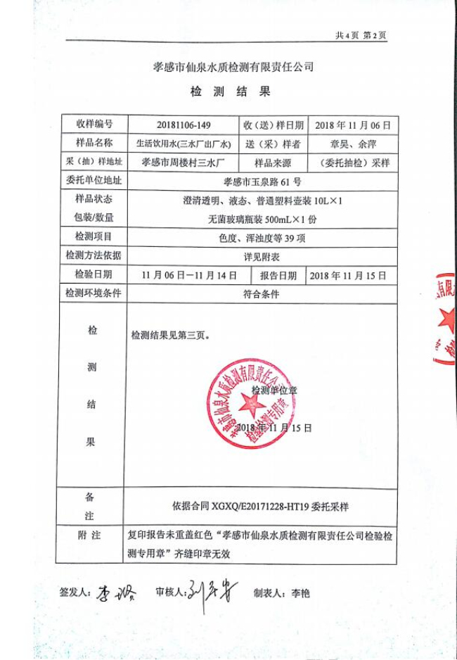 2018年11月水質(zhì)報告