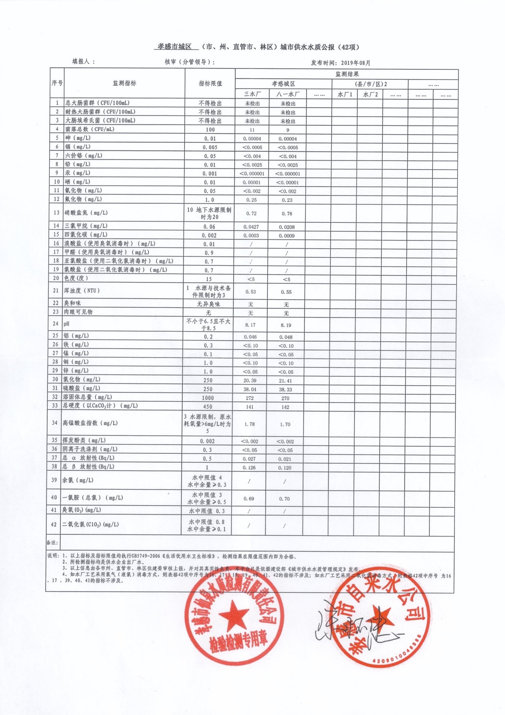2019年8月水質(zhì)報(bào)告