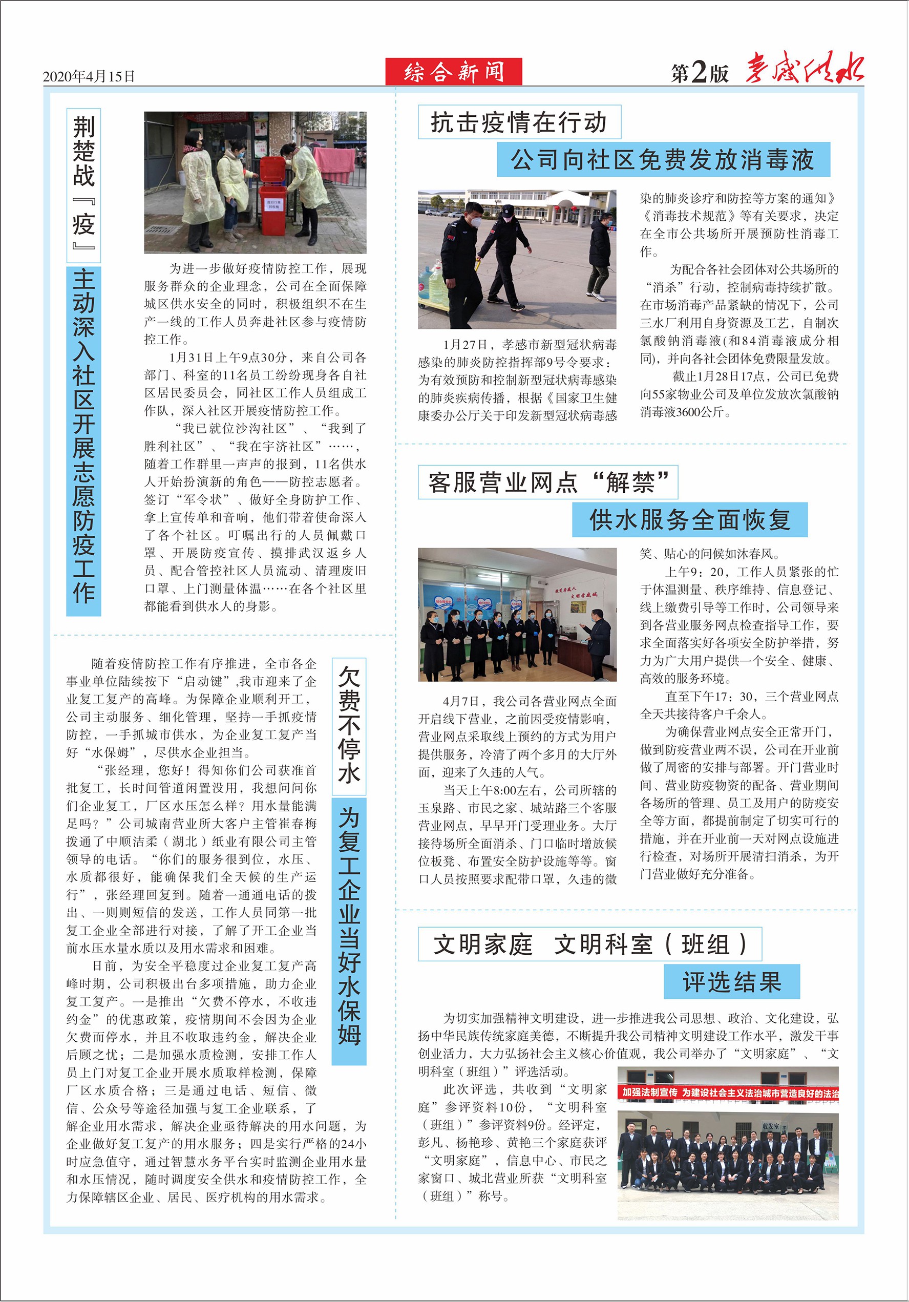 來(lái)源:孝感自來(lái)水 發(fā)布時(shí)間:2020/4/22 10:25:47