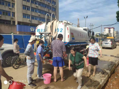 8月19日上午室外溫度已達(dá)35℃,管道工們克服高溫,奮力搶修,終于在下午5點(diǎn)前修好了供水管道,解決了群眾用水問題。
